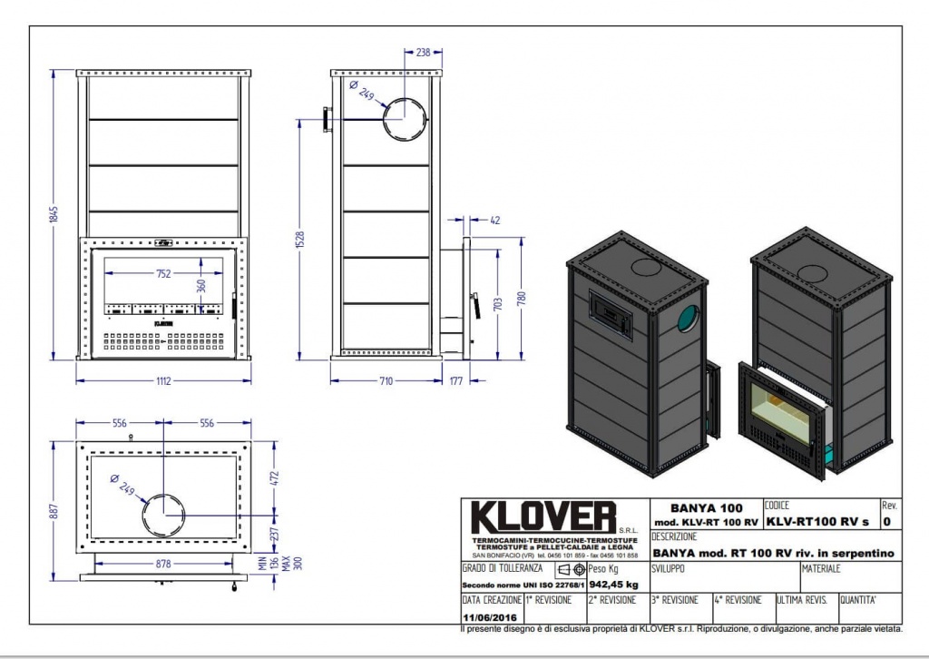Инструкции, чертежи, документы - Банная печь Klover RT 100-RV в облицовке жадеит