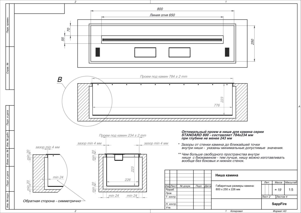 Инструкции, чертежи, документы - Автоматический биокамин SappFire Standard (топливный блок 800)
