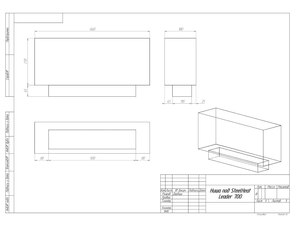 Инструкции, чертежи, документы - Биокамин в нишу SteelHeat Leader 700 Small