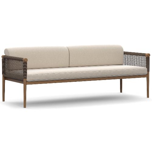 Строгий и минималистичный дизайн коллекции Lodge, описанный в структуре, полностью выполненной из тика, оплетенной круглым канатом, который создает мягкое и прочное плетение. Гостеприимное гнездышко, которое становится местом для разговоров и чтения.