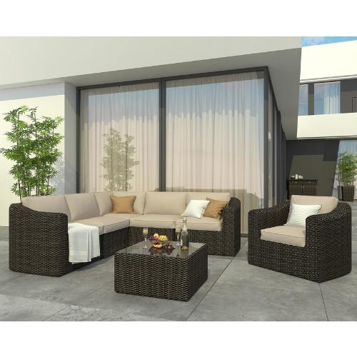 Также на фото изображены кресло для отдыха "Малага" и кофейный столик "Малага" - Вы можете приобрести их дополнительно, чтобы составить из этих элементов великолепную группу для отдыха.