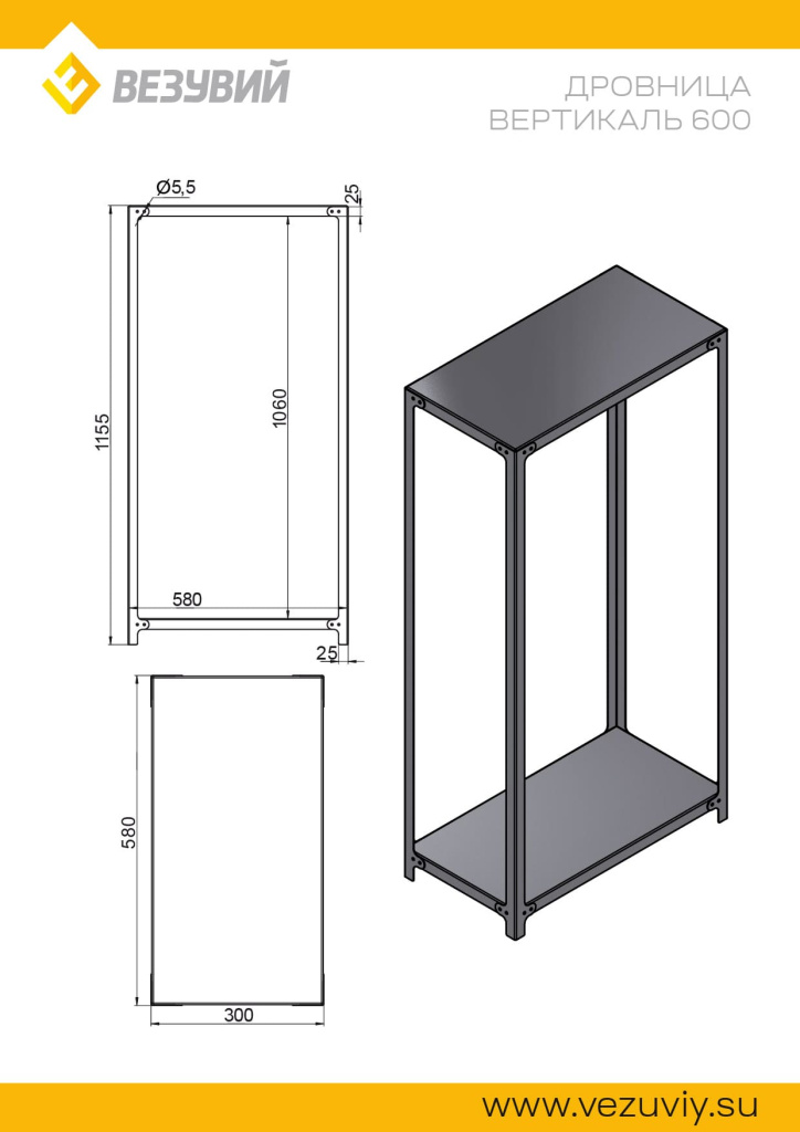 Дровница Везувий Вертикаль 600