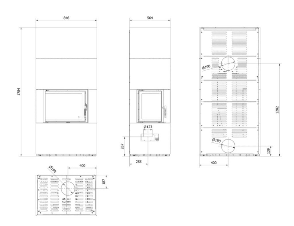 Инструкции, чертежи, документы - Каминокомплект Kratki Pro Floki в облицовке Cemento Grigio Bocciardata, угловое стекло слева