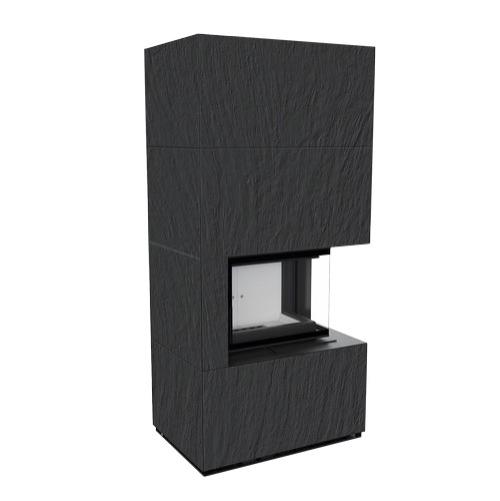 Каминокомплект Kratki Pro Floki в облицовке Naturali Ardesia Nero a Spacco, угловое стекло справа (светлая футеровка)