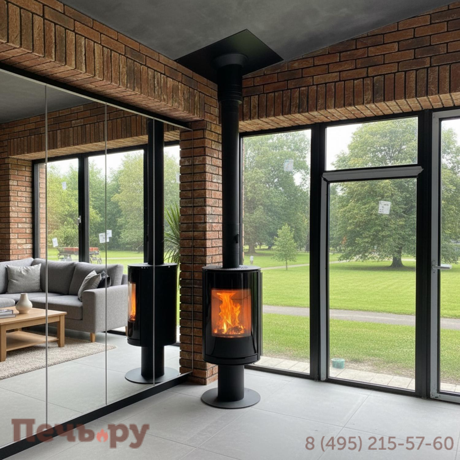 Печь на ножке, разные варианты отделки. Чистое стекло, вторичный дожиг.
