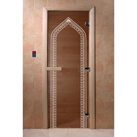 Дверь для бани DoorWood Арка 1900х800, 8 мм, 3 петли, коробка - ольха