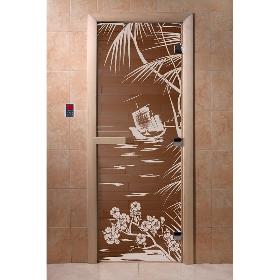Дверь для бани DoorWood Голубая лагуна 1900х700, 8 мм, 3 петли, коробка - ольха