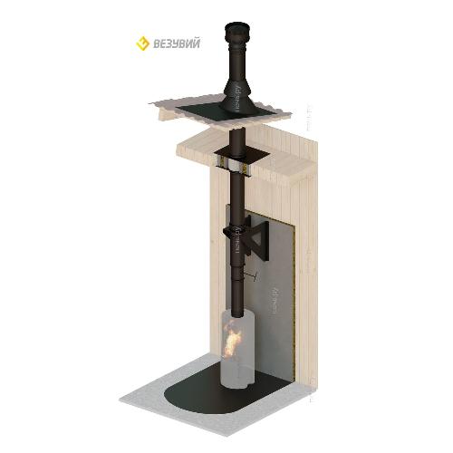 Комплект дымохода Везувий, д. 150 мм, нержсталь, черный, проход через крышу, верхний выход (высота 5 м.)