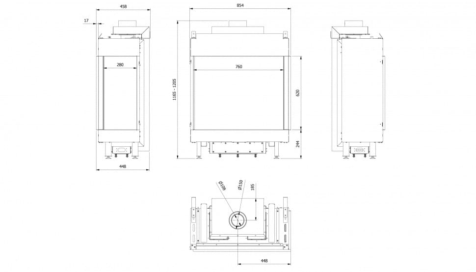 - Диаметр дымохода, мм 150