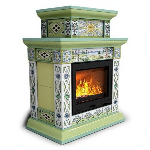 Готовый камин КимрПечь Билибин двухъярусный художественный центральный с топкой Астов К7454 (весна)