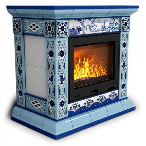 Готовый камин КимрПечь Билибин художественный центральный с топкой Астов К7454 (зима)