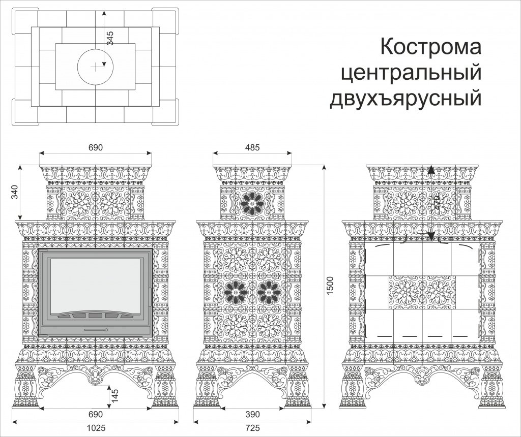 Инструкции, чертежи, документы - Готовый камин КимрПечь Кострома двухъярусный центральный с топкой Астов К7454