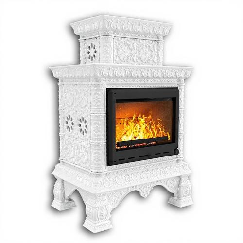 Готовый камин КимрПечь Кострома двухъярусный центральный с топкой Астов МЛ 700 (белый)