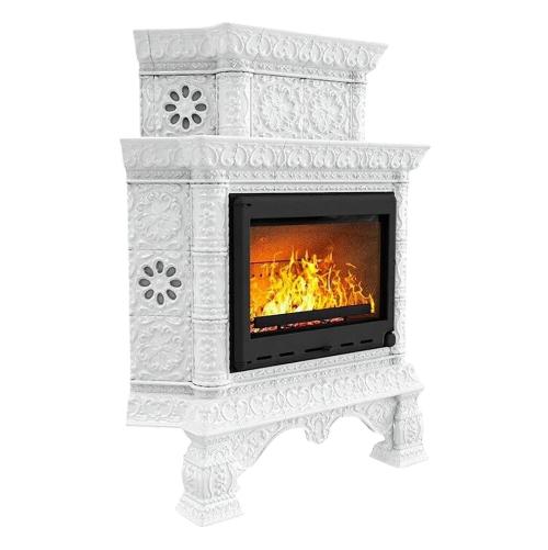 Готовый камин КимрПечь Кострома двухъярусный угловой с топкой Астов МЛ 700 (белый)