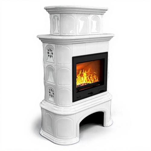 Готовый камин КимрПечь Прованс с дровником двухъярусный центральный с топкой Астов МЛ 700 (белый)
