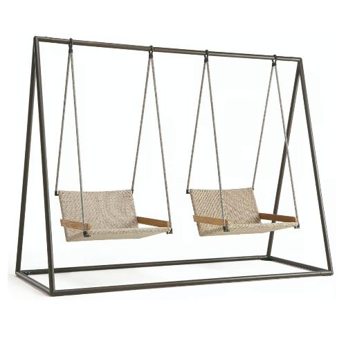 Новые подвесные качели можно персонализировать веревкой (морское настроение) в сочетании с тиковым деревом, характерным для всей коллекции Allaperto. Большие размеры кресла в сочетании с прочным каркасом создают совершенно новое предложение, идеально подходящее для беззаботного покачивания на открытом воздухе с максимальным комфортом.