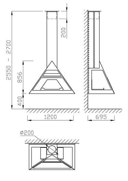 - Диаметр дымохода, мм 200