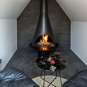 Так же модель может быть изготовлена без опоры, превращая камин в подвесной вариант.