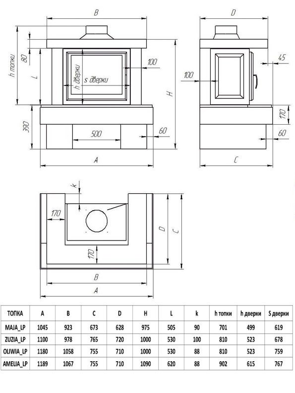 Инструкции, чертежи, документы - Каминная облицовка FireBird Байкал (для топки Zuzia/LP) (стекло слева-справа)