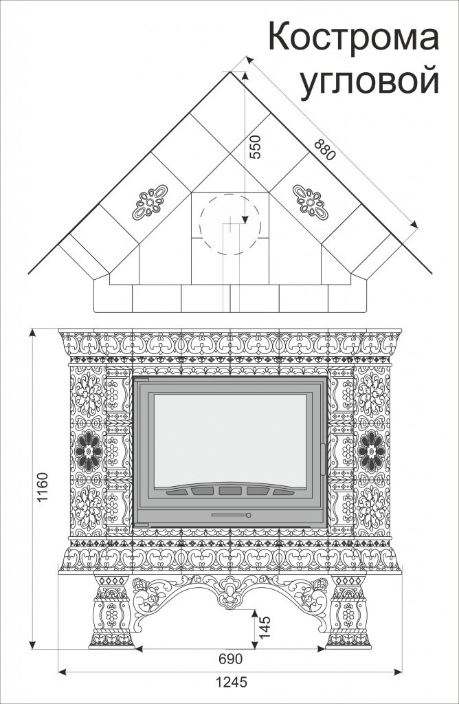 Инструкции, чертежи, документы - Облицовка камина КимрПечь Кострома угловой для топок 600