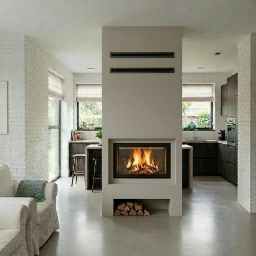 Это стильное и безопасное решение для интерьера — камин с топкой и облицовкой из негорючего материала на основе силикатов кальция. Прочная конструкция обеспечивает высокий уровень пожарной безопасности, а внешняя отделка из современных финишных материалов придаёт коробу эстетичный вид. Возможность окраски в любой цвет из палитры позволяет идеально вписать камин в любой дизайнерский проект — от классики до урбанистического лофта.