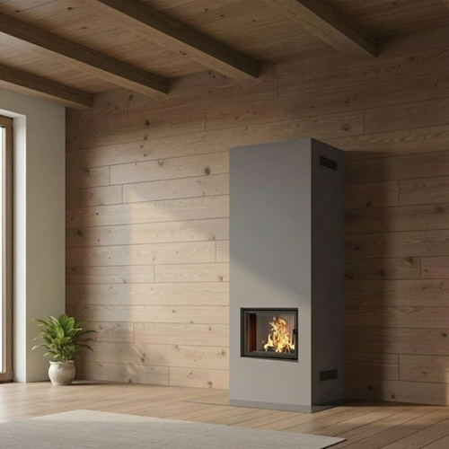Камин подходит для монтажа в домах с деревянными стенами и перекрытиями