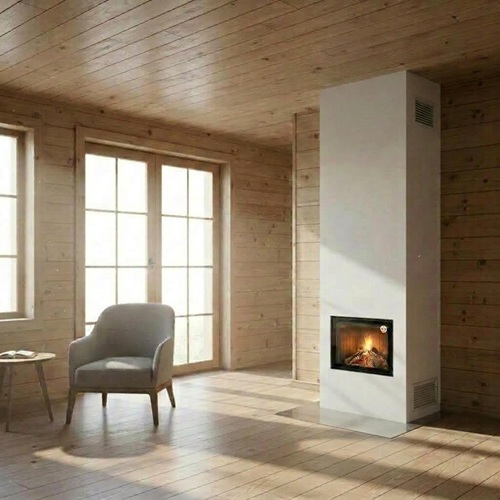 Камин подходит для монтажа в домах с деревянными стенами и перекрытиями