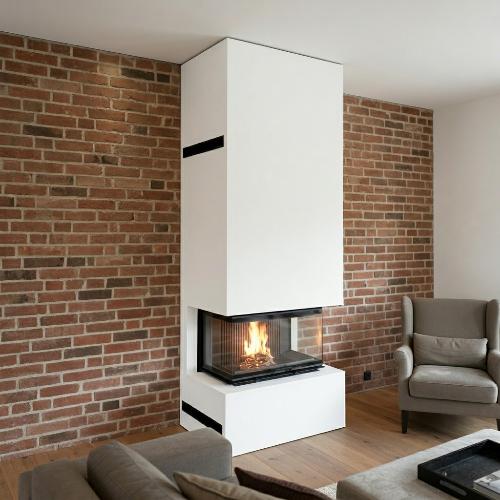 Это стильное и безопасное решение для интерьера — камин с топкой и облицовкой из негорючего материала на основе силикатов кальция. Прочная конструкция обеспечивает высокий уровень пожарной безопасности, а внешняя отделка из современных финишных материалов придаёт коробу эстетичный вид. Возможность окраски в любой цвет из палитры позволяет идеально вписать камин в любой дизайнерский проект — от классики до урбанистического лофта.