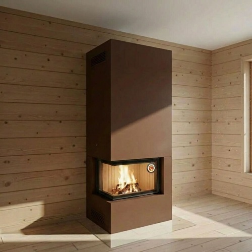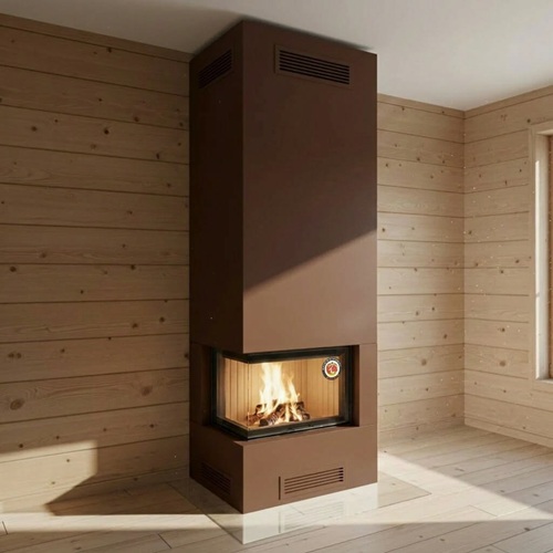 Камин подходит для монтажа в домах с деревянными стенами и перекрытиями