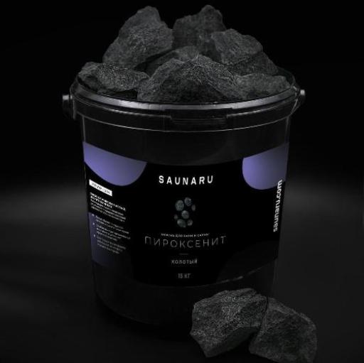 Камни для сауны Saunaru пироксенит колотый Premium, фракция до 100 мм, ведро 15 кг