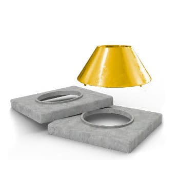 Покрывная плита имеет вес 7 кг, она устанавливается на оголовок дымохода, а конус устанавливается сверху, надежно закрывая отверстие и защищая дымоход от попадания осадков внутрь.