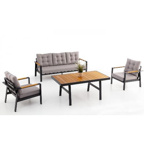 Tokyo - уличный лаунж-комплект, который привлекает внимание своим элегантным внешним видом и деревянными подлокотниками. Он выполнен в соответствии с системой менеджмента качества ISO 9001. Подходит для использования в самых разнообразных пространствах, таких как сад, балкон, терраса, зона у бассейна, пляж, зона отдыха в офисе и дома.