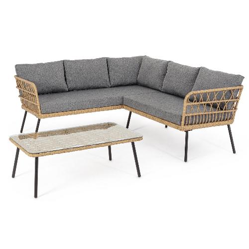 Плетеный комплект лаунж мебели Burrel с удобными подушками станет отличным выбором для обустройства летних площадок на свежем воздухе. Набор разработан для комфортного размещения четырех человек и создания уютной обстановки, располагающей для приятного времяпрепровождения в кругу друзей и близких. Каркас всей мебели изготовлен из стали, что обеспечивает максимальную устойчивость и надежность. Плетение натурального цвета придает набору необыкновенную теплоту и легкость.