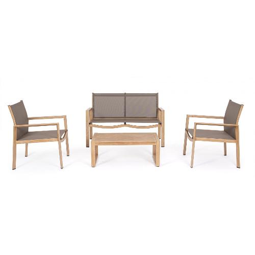 Комплект лаунж мебели Kallen является универсальным решением для обустройства открытых пространств. Дизайн всего набора заключается в линейной геометрии и классических линиях. Каркас из алюминия с отделкой "под дерево" и текстилен, из которого изготавливаются сиденья и спинки, обеспечивают комплекту прочность, долгий срок службы и возможность использовать мебель на свежем воздухе. Kallen станет отличным решением для создания лаунж зон.