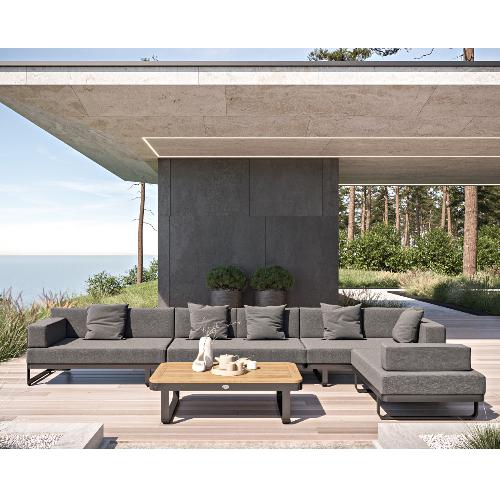 Особенности: планки столешницы из благородного тика, уличная ткань (олефин), съемные чехлы подушек на "молнии", дополнительно можно приобрести комплект защитных чехлов