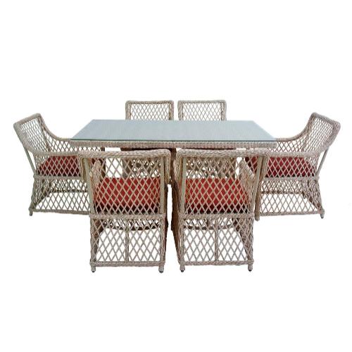 Прямоугольный обеденный стол, со столешницей из стекла - 1 штКресло - 6 шт