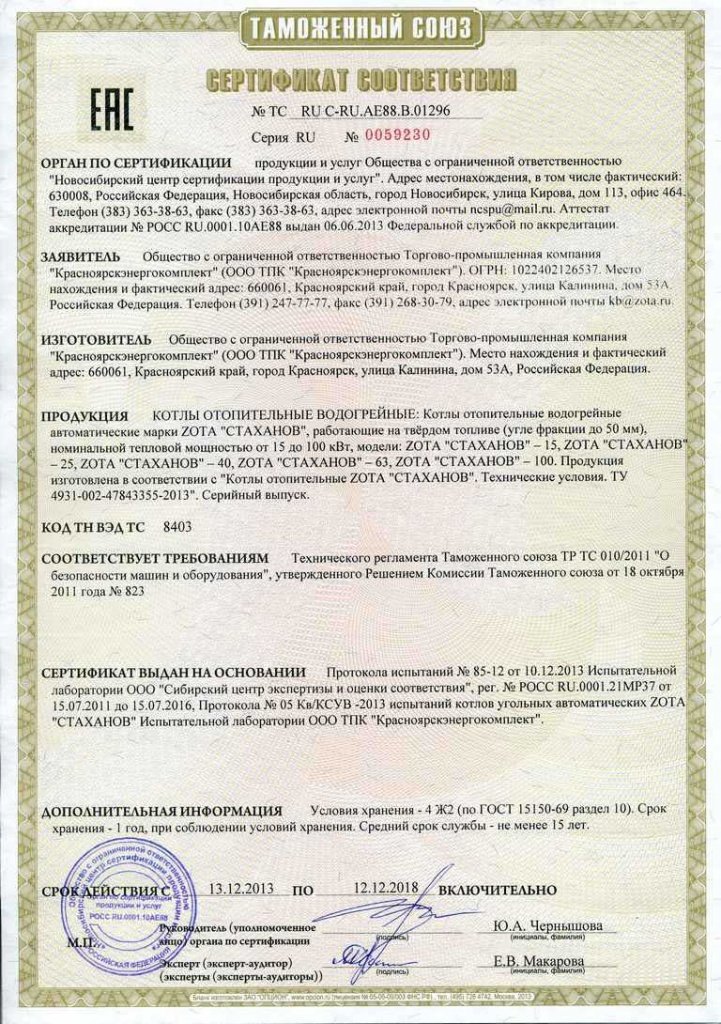Инструкции, чертежи, документы - Отопительный котел Zota Стаханов 40
