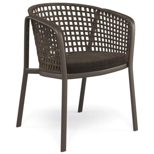 Каркас кресла выполнен из трубчатого алюминия. Сиденье изготовлено из листа алюминиевого сплава, который вытягивается для придания ровной формы, а затем крепится к алюминиевой раме с помощью структурной сварки, выполненной с использованием технологии TIG, которая обеспечивает особое сопротивление, а также лучший стандарт с точки зрения прочности и эстетики. Структура стальной спинки поддерживает декоративные узоры, предлагаемые в различных материалах. Все выбранные материалы гарантируют длительную стойкость и стабильность цвета.