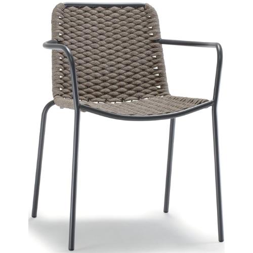 Выполненное из металла с холодным цинкованием и порошковым покрытием, кресло Cannes имеет дизайн, который делает каждый угол своего каркаса извлистым. Сиденье и спинка поддерживают корпус с толстым, канатным плетением из текстилена и полиэтилена. Благодаря простому каркасу кресла штабелируются.