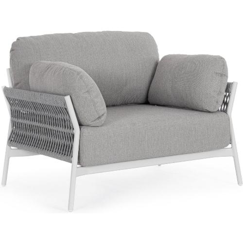Веревочное плетение из олефиновой ткани (100% полипропилен), благодаря которому кресло выглядит стильно в любом помещении или на открытой площадке.