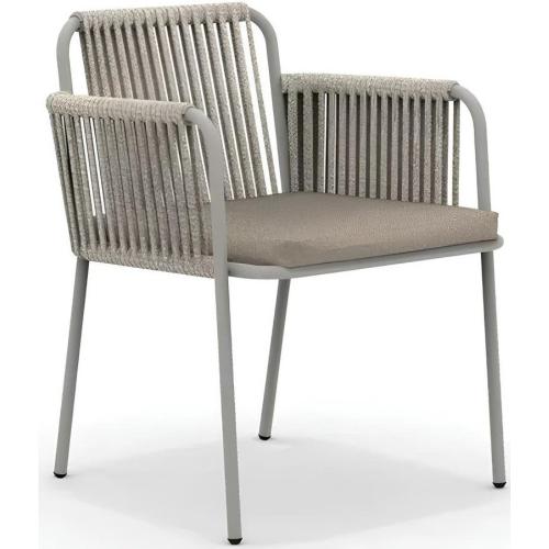 - Спинка и подлокотники оплетены синтетическим роупом - запатентованным итальянским полиолефиновым волокном для наружного применения (65% Olyna/35% Polyester). Материал обладает водонепроницаемостью, устойчив к образованию пятен, к ультрафиолетовым лучам, хлору, влажности, а также антибактериален. Материал пригоден для вторичной переработки и нетоксичен.
