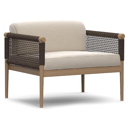 Строгий и минималистичный дизайн коллекции Lodge, описанный в структуре, полностью выполненной из тика, оплетенной круглым канатом, который создает мягкое и прочное плетение. Гостеприимное гнездышко, которое становится местом для разговоров и чтения.