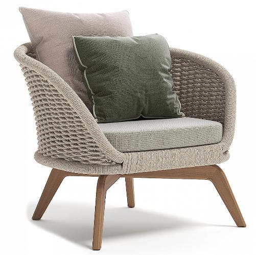 Ludo - это коллекция кресел, диванов и столиков, выполненных из тикового дерева и плетения каната из тефлонового акрила. Мебель идеально подходит для обстановки лаунж зон на открытом воздухе.