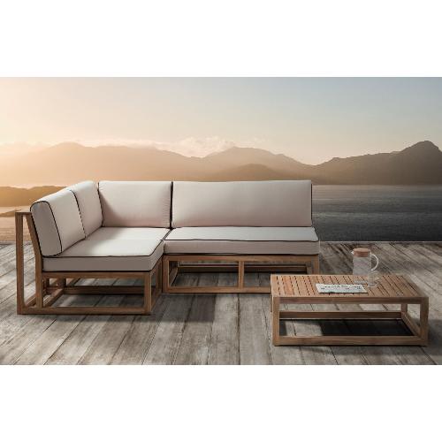 Коллекция модульной мебели Mississippi из тика с комфортными подушками украсят открытое лаунж простарнство: будь то частный сад или терраса отеля. Планки из натурального тикового дерева идеально дополняют бежевые подушки с окантовкой шоколадного цвета, предлагая минималистичное и стильное мебельное решение. Удобство комплекта также в его модульности - каждый элемент можно переставить по своему желанию, а из столика сделать пуф, положив на него подушку.
