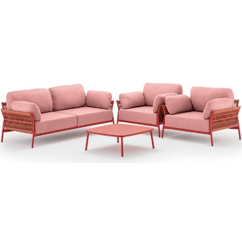 Комплект Easy состоит из двухместного дивана, двух кресел и журнального столика. Алюминиевый каркас с порошковым покрытием делает мебель комплекта устойчивой и надежной. Подлокотники и спинки кресел и двухместного дивана оплетены акриловым канатом Ø6 мм, благодаря чему комплект выглядит стильно в любом помещении или на открытой площадке. Подушки с устойчивыми к пятнам и ультрафиолетовому излучению съемными акриловыми чехлами обеспечивают комфортный отдых.