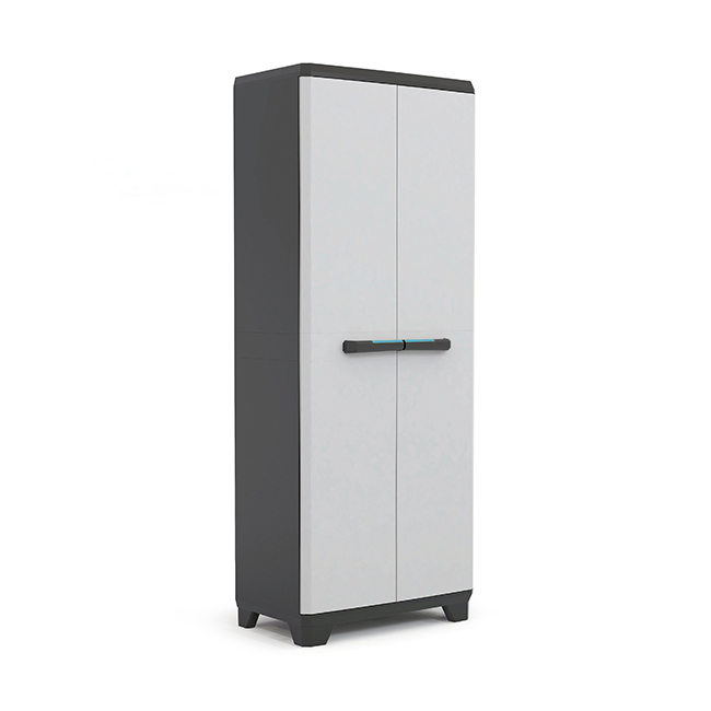 Шкафы выполнены из прочного качественного пластика. Преимуществами такой мебели является невосприимчивость к ржавчине и выцветанию. Относительно деревянных и металлических аналогов шкафы из пластика лёгкие, их просто перемещать.
