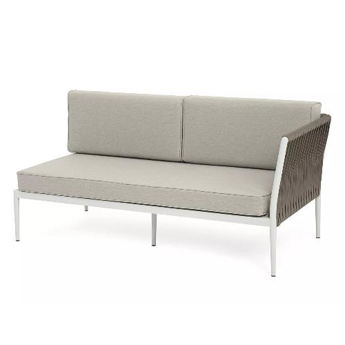 Левый модуль плетеный из роупа 4SiS Касабланка, каркас алюминий светло-серый (RAL7035) муар, роуп серо-коричневый 23мм, ткань бежевая 15052