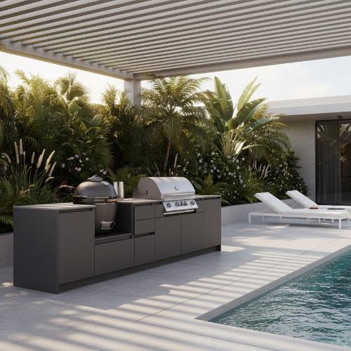 Стандартные отдельные модули в большом ассортименте позволяют создать абсолютно любой кухонный барбекю комплекс на свежем воздухе. Дополнительно возможна разработка индивидуальных решений.