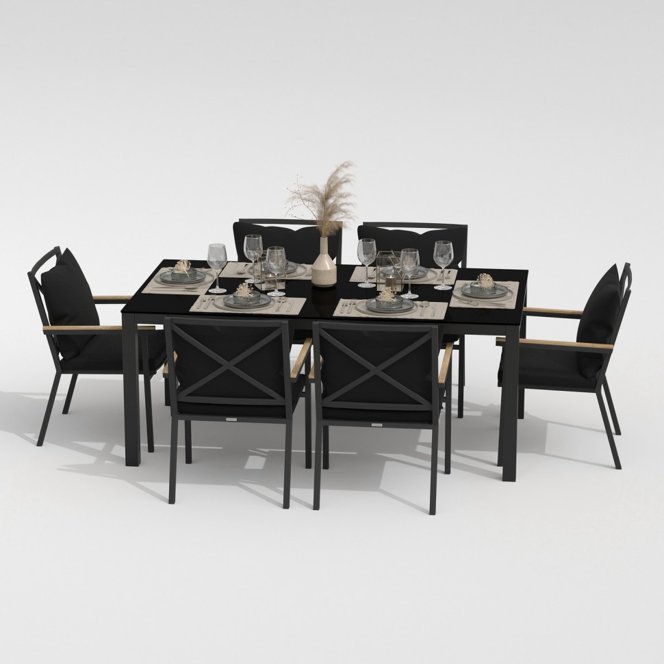 Обеденная группа CANA FESTA plus каркас карбон / стол стекло 180 / ткань черная