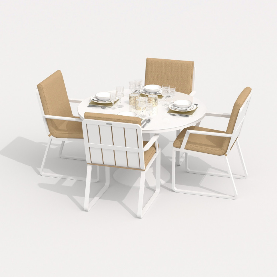 Обеденная группа DIVA ALBA каркас белый / стол стекло диа 110 / ткань бежевая
